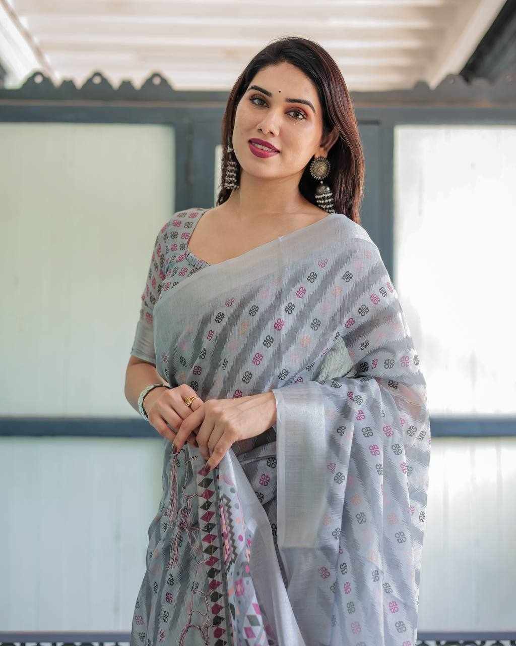 Saree Fabric: Silver Weaving Patta Linen Cotton