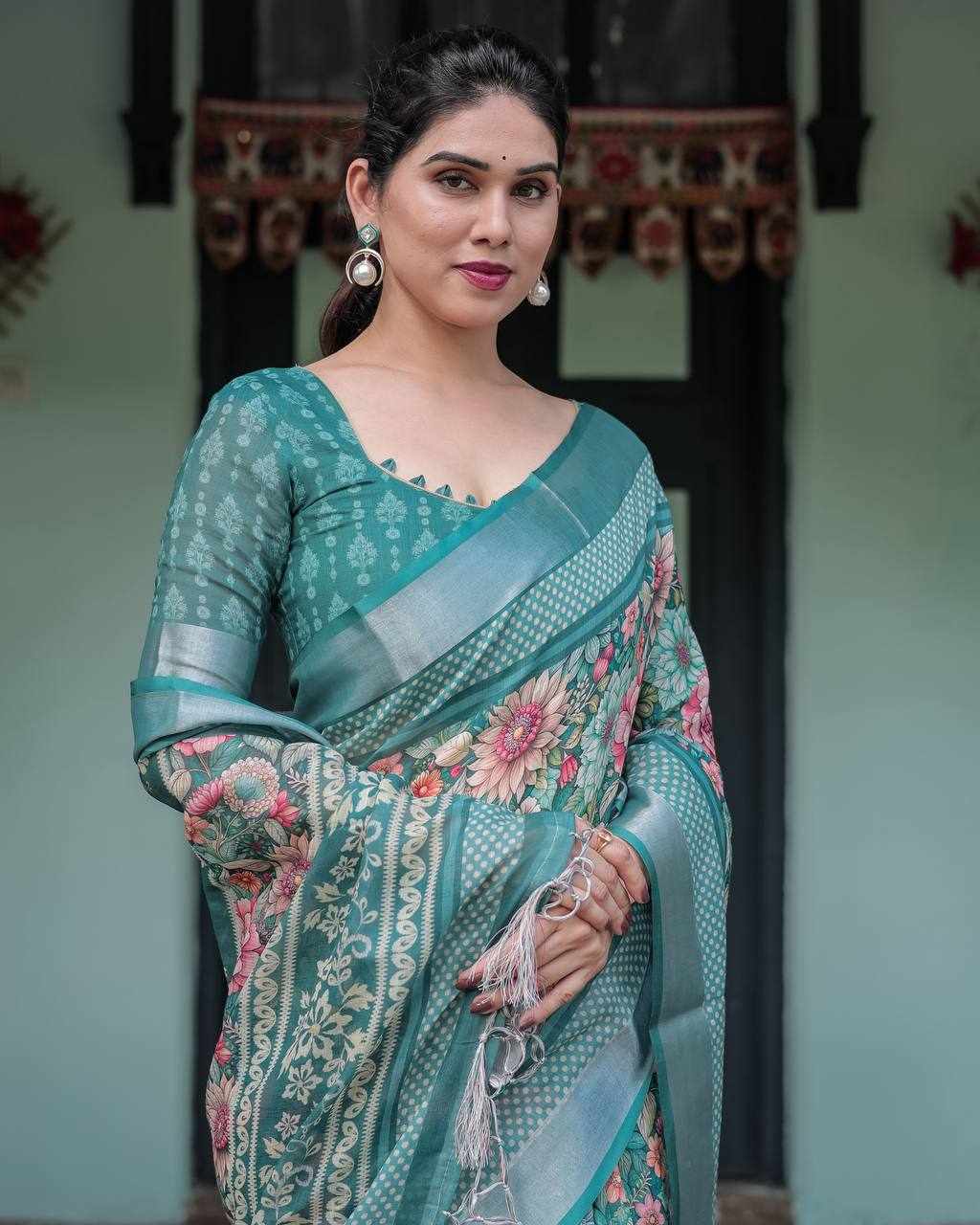 Silver Weaving Patta Linen Cotton Saree