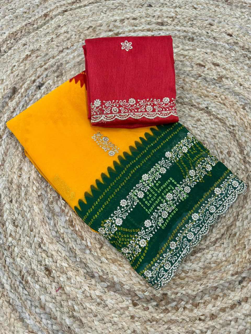PIYU P1052 LEHERIYA BANDHANI-1 Yellow-Green Saree