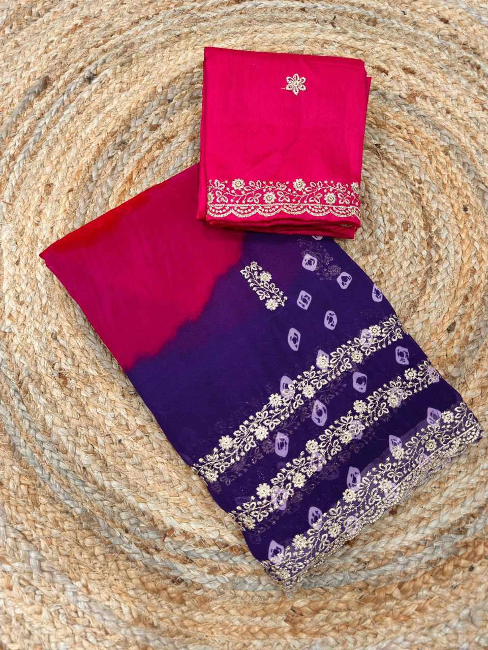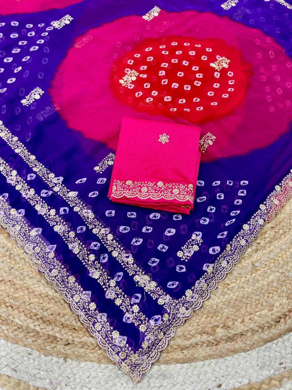 | Name : | PIYU P1051 LEHERIYA BANDHANI-3 Purple Saree |