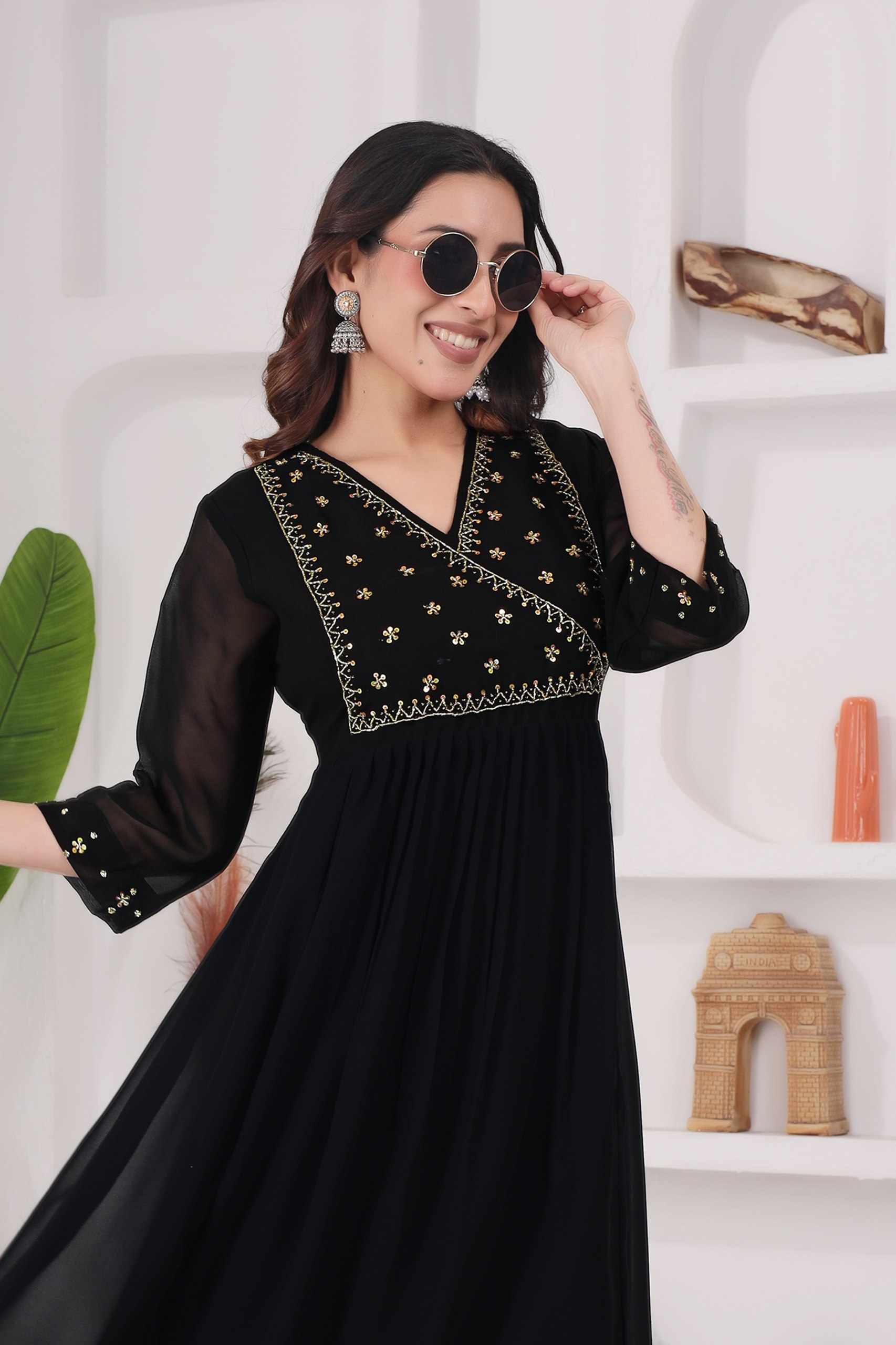 Reviews for WM12 BLACK BLOOMING GEORGETTE BEAUTIFUL HANDWORK KURTI