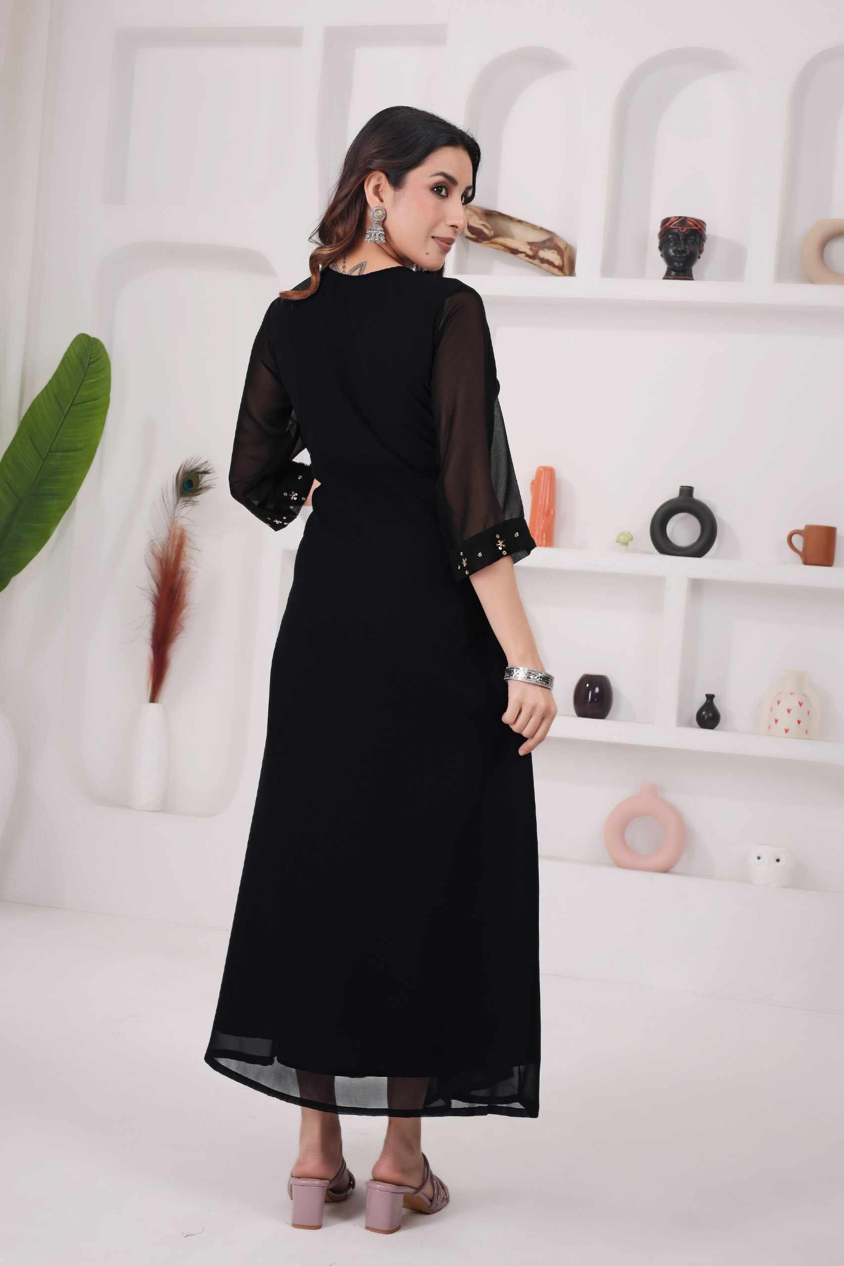 WM12 BLACK BLOOMING GEORGETTE BEAUTIFUL HANDWORK KURTI